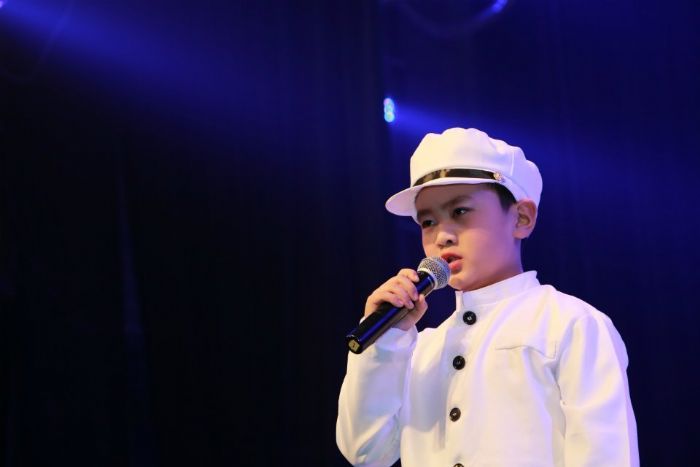 张镒璇同学2013年8月来到燕赵星跟随牛老师学习声乐,经过一段时间的学习,牛老师发现张镒璇同学音域较窄,但声音浑厚结实,就在科学的发声训练之余,重点培育他的朗诵技能。