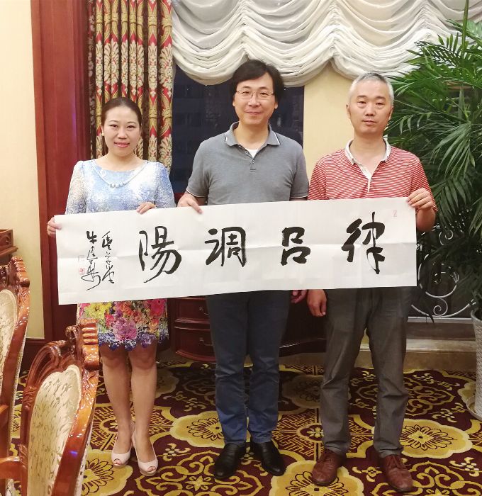 向廖老师赠送象征中国古典音乐的书法作品